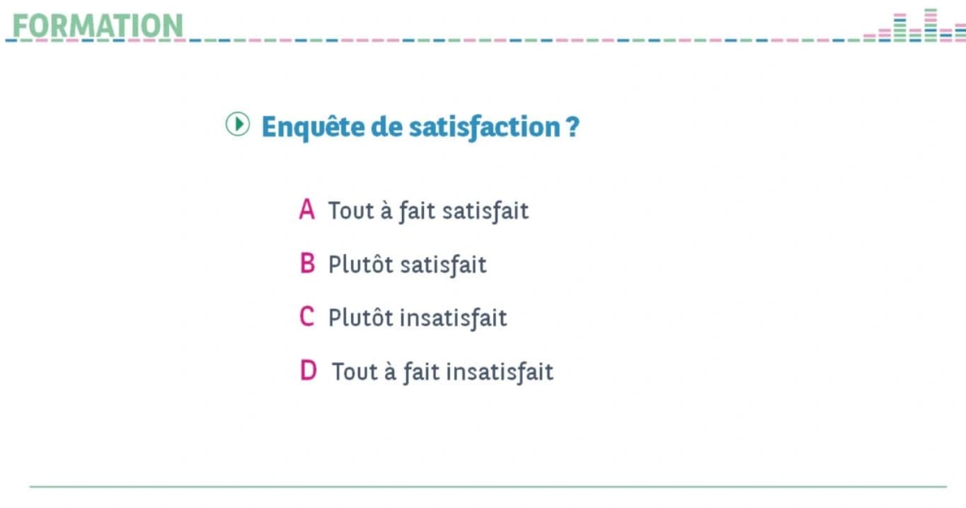 - Les réponses sont immédiatement collectées et affichées sur écran sous forme de graphiques clairs et dynamiques.
